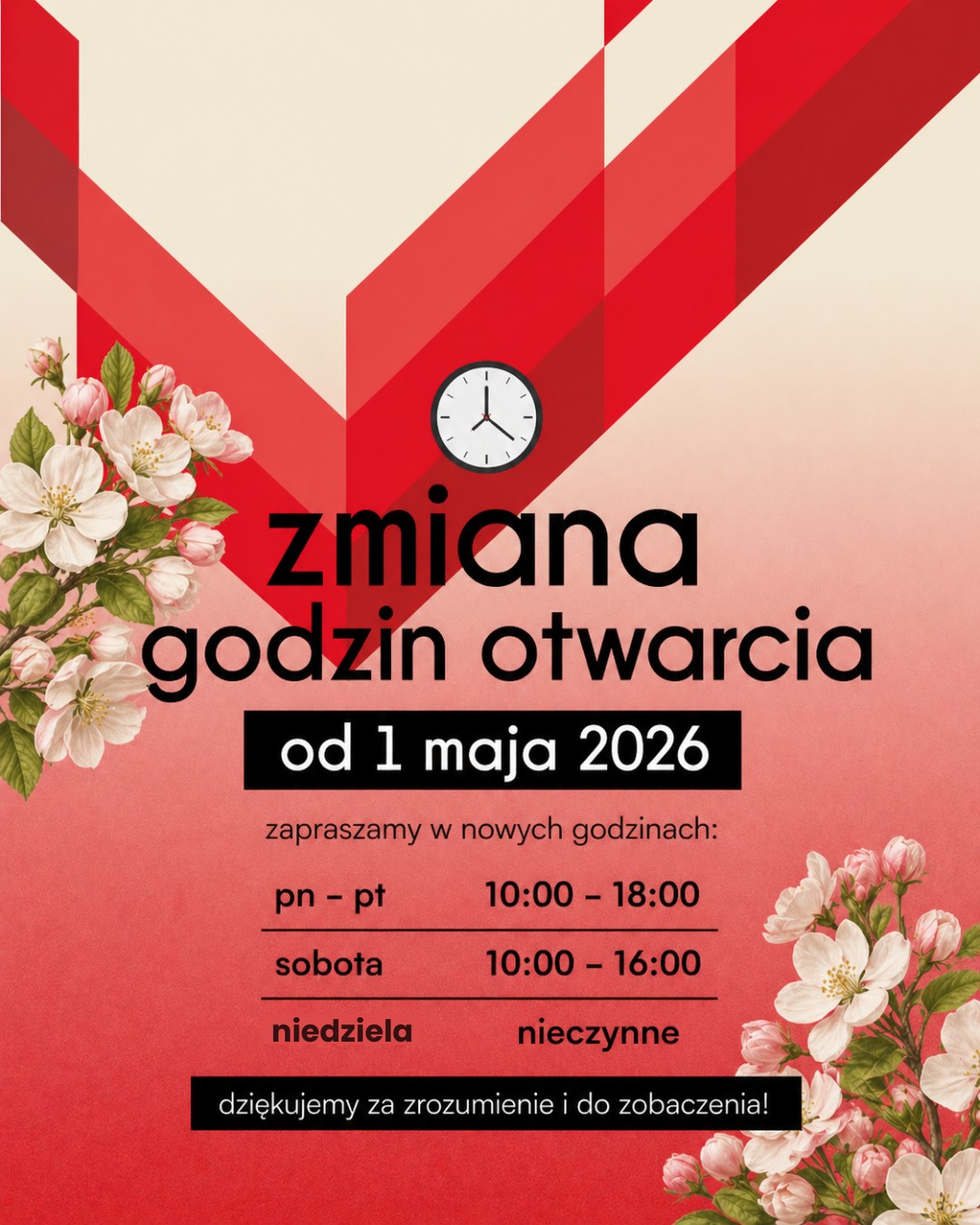 GODZINY OTWARCIA: pon. - pt. 11:00-19:00 sob. 11:00-17:00 niedziela handlowa - nieczynne
