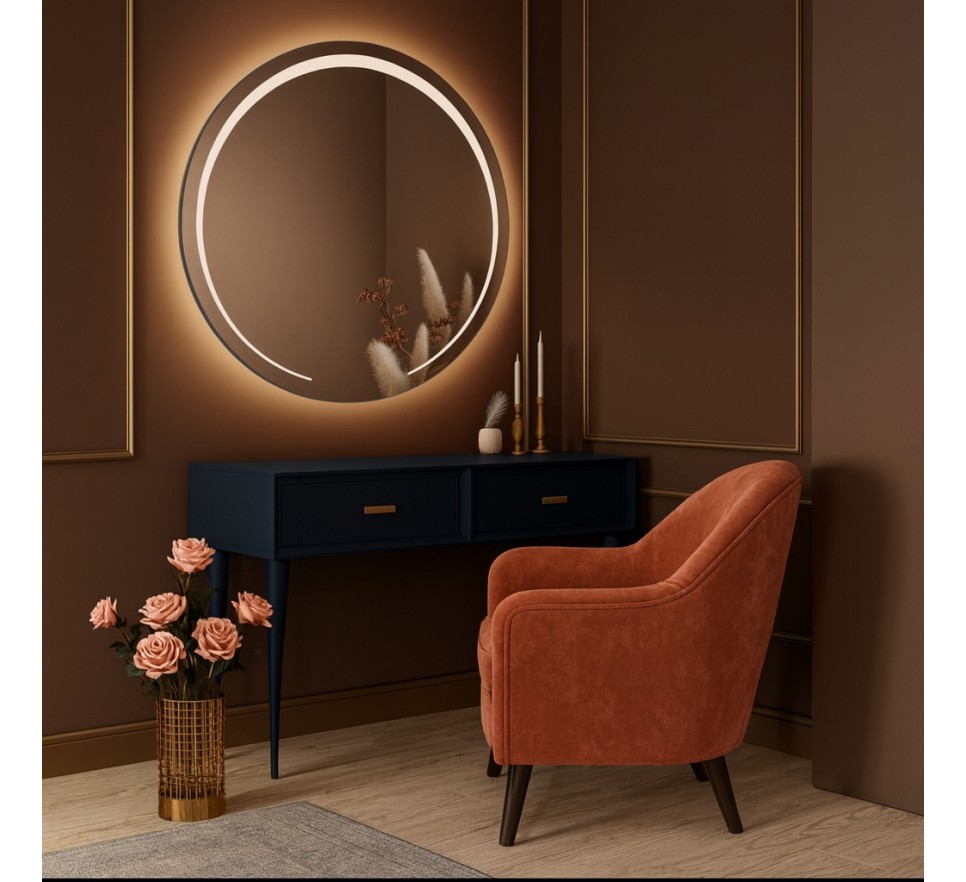 Lustro posiada mleczny piaskowany pasek LED na tafli lustra