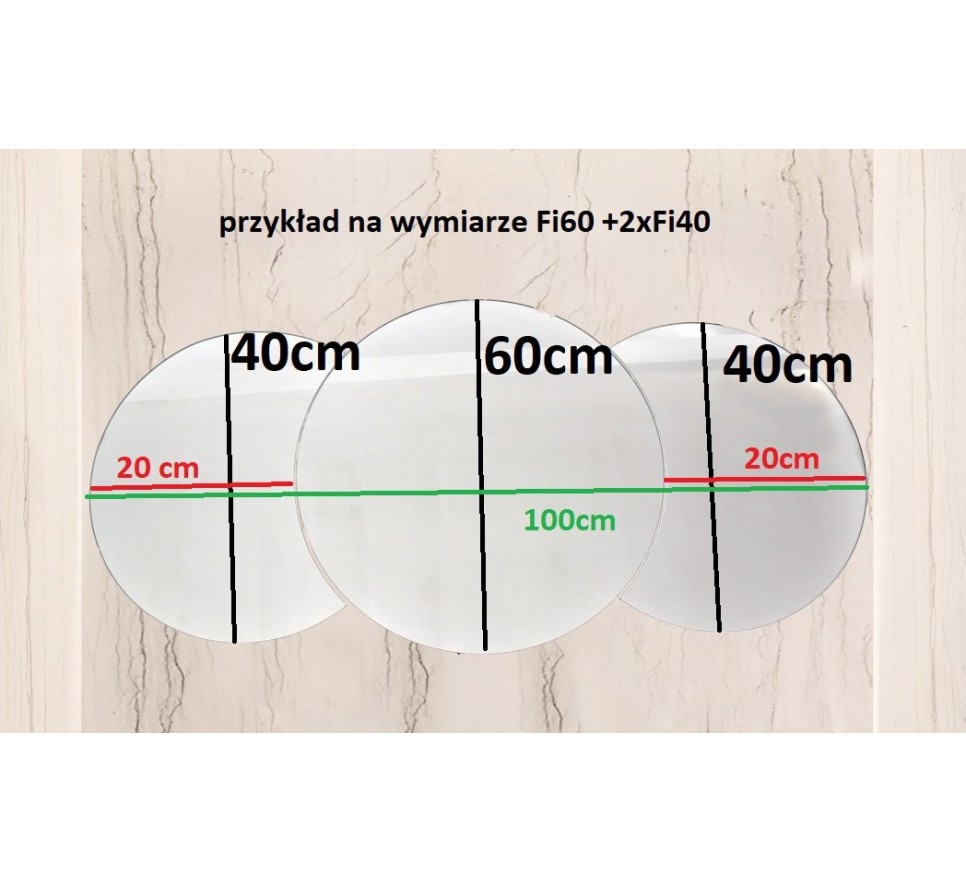 - Dostępne wymiary: od Fi60 i 2x Fi40 cm do Fi170 i 2x Fi150 cm