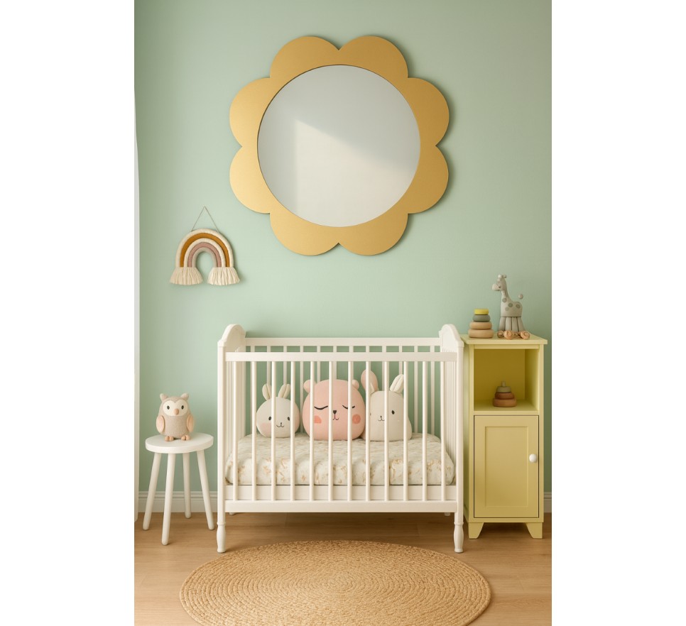 Lustro posiada nowoczesny design co idealnie wpasuje się przestrzeń malucha