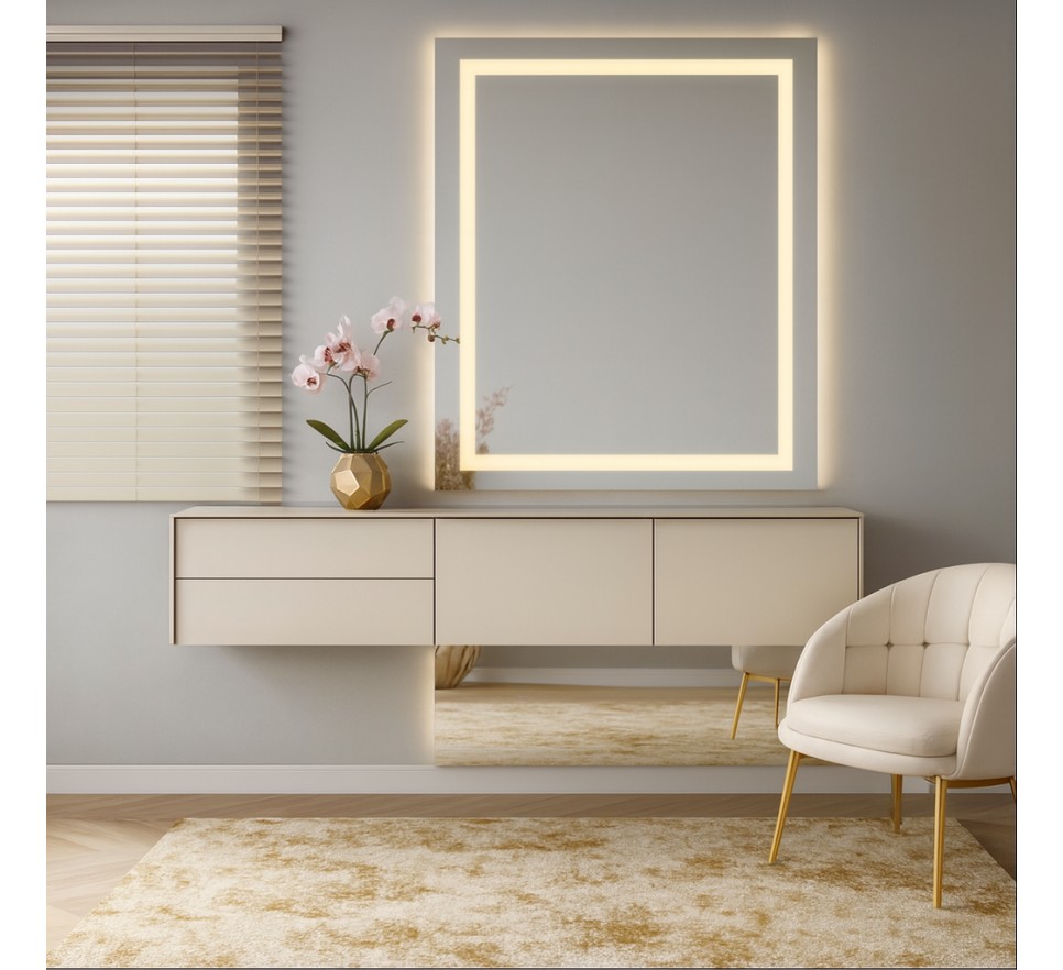 - Tafla lustra: Grubość 4mm + 2 cm stelaż do led
