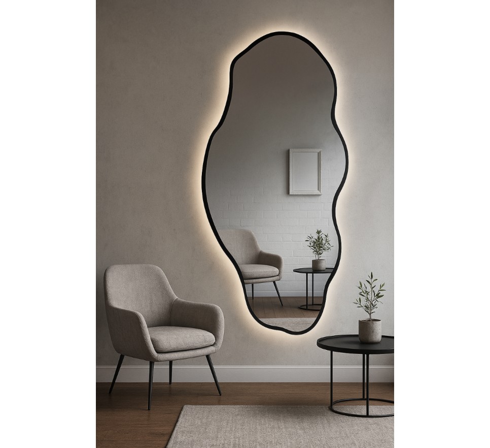 Lustro łazienkowe o nieregularnym kształcie w ramie z podświetleniem - LOLIT w ramie led