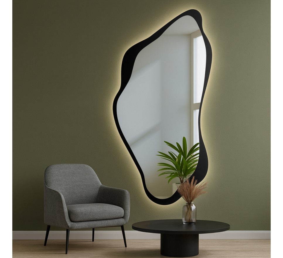 Lustro łazienkowe o nieregularnym kształcie w ramie z podświetleniem led - PIENA w ramie led