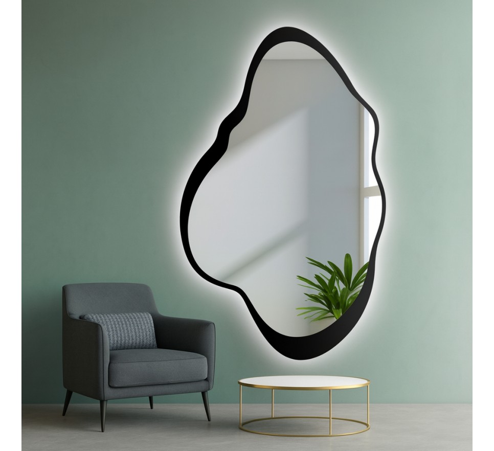 Lustro łazienkowe o nieregularnym kształcie z podświetleniem led- POCO w ramie led