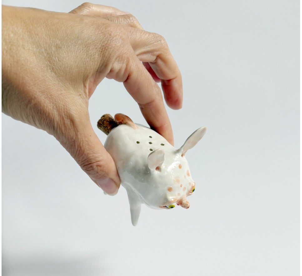 Ceramiczna solniczka w kształcie śmiesznego zwierzątka