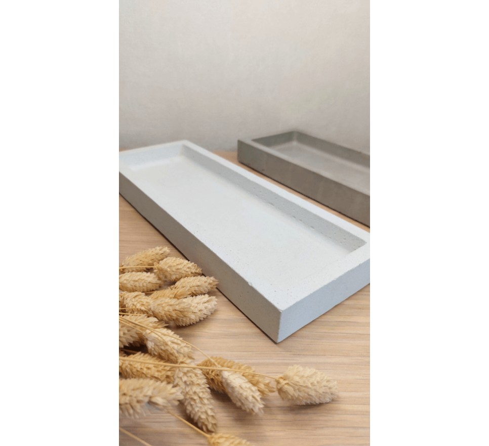 Duża podstawka z betonu architektonicznego, idealna w łazience lub na toaletce, by stylowo uporządkować kosmetyki, świece czy drobne dekoracje. Wykonana ręcznie — każda sztuka posiada wyjątkowe przebarwienia i fakturę, dzięki czemu jest jedyna w swoim rodzaju. Beton zapewnia wytrzymałość, a specjalne podkładki od spodu chronią meble przed zarysowaniami.