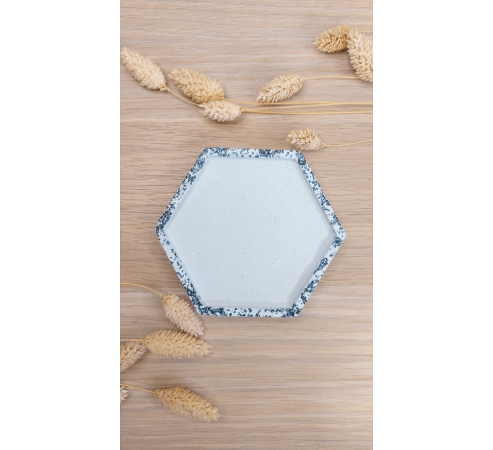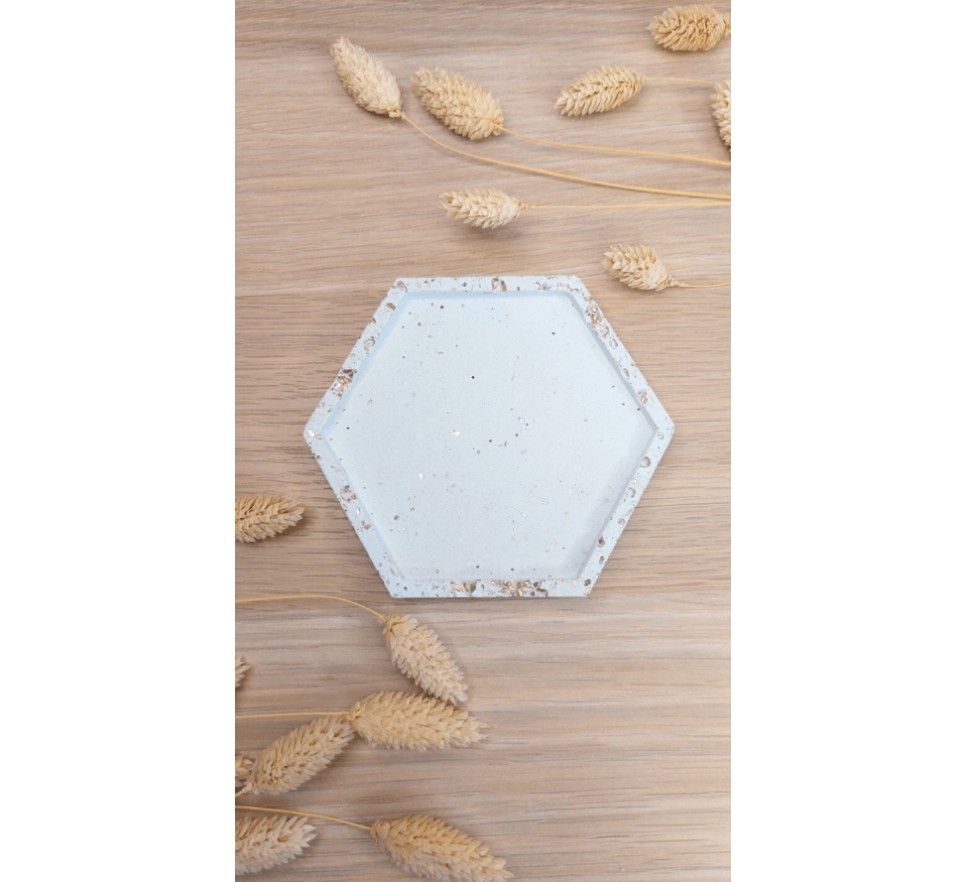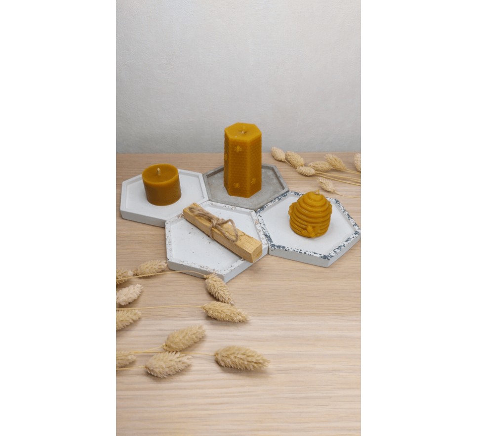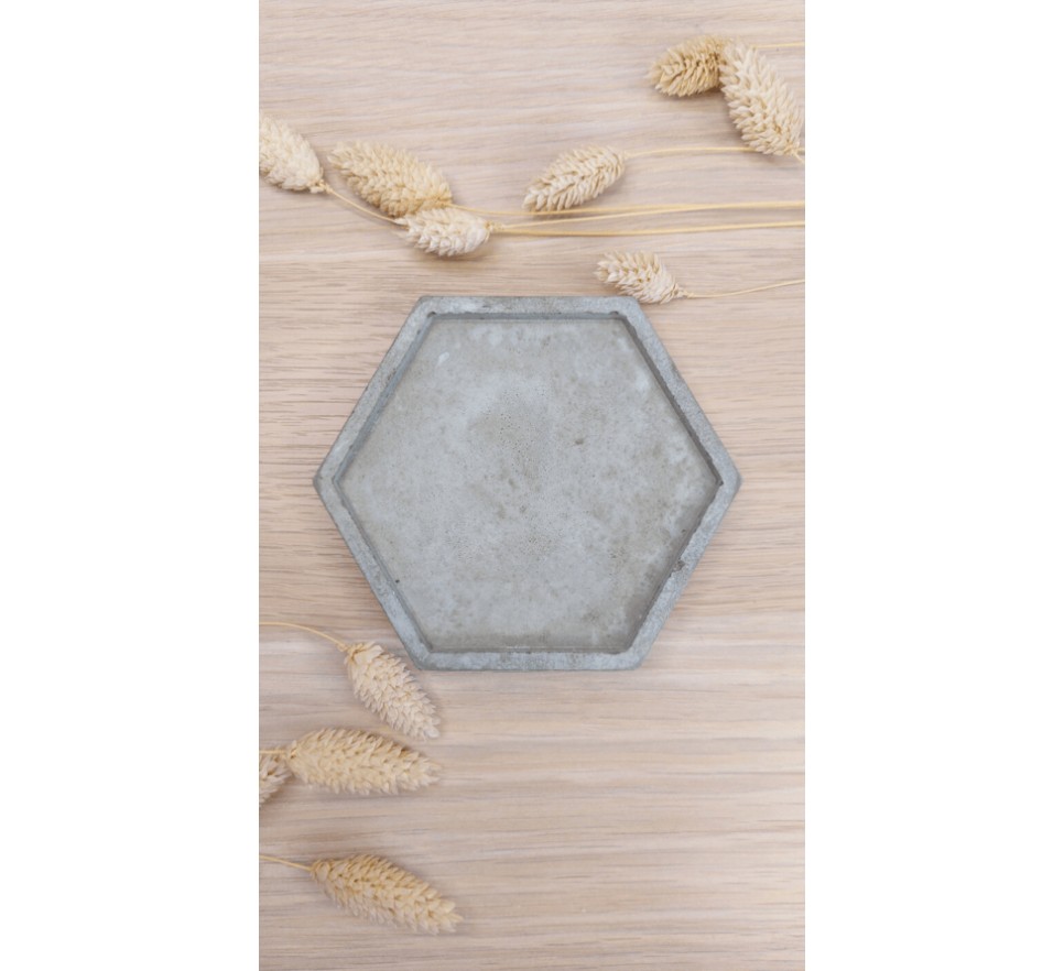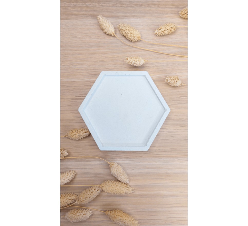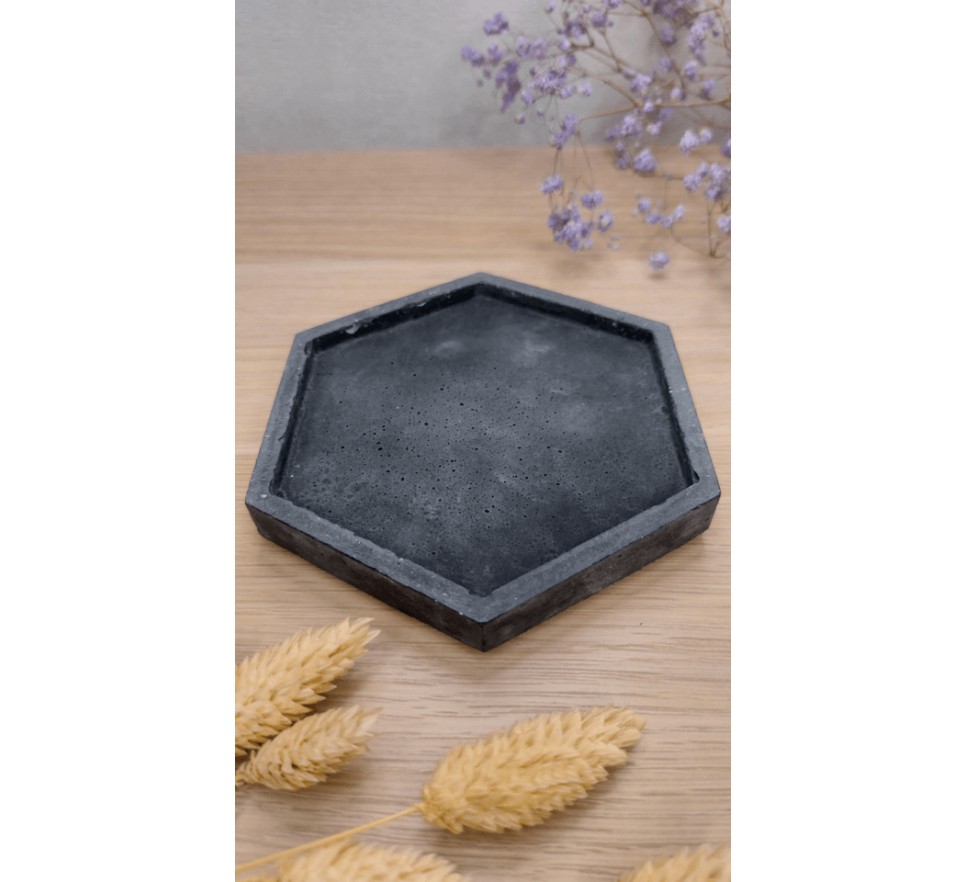 Heksagonalna, ręcznie wykonana betonowa podstawka “Heksagon” to stylowy i praktyczny dodatek do wnętrz. Świetnie sprawdza się jako podkładka pod kubek, świecę, palo santo czy biżuterię. Produkt zabezpieczono hydrofobową powłoką, co zwiększa jego odporność na wilgoć oraz ułatwia czyszczenie. Dodatkowo, podstawka ma podkładki chroniące powierzchnie mebli przed zarysowaniami.