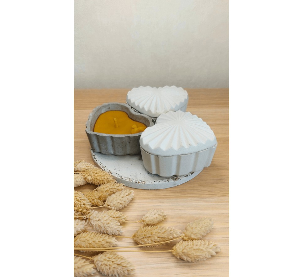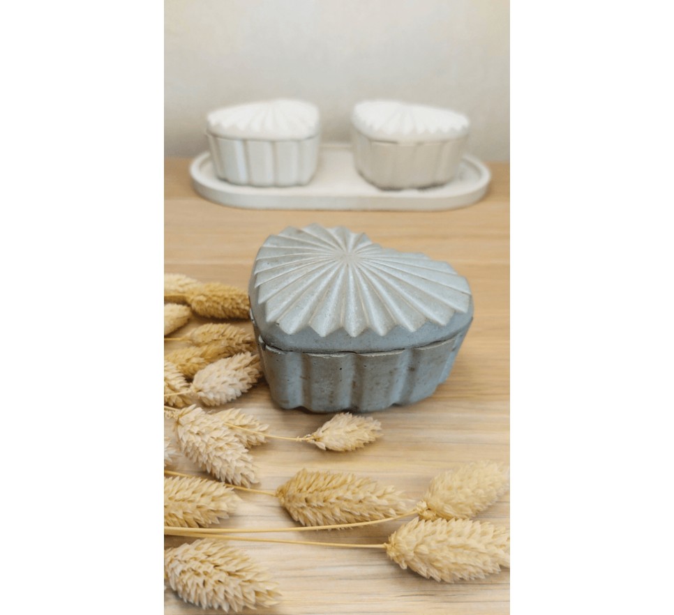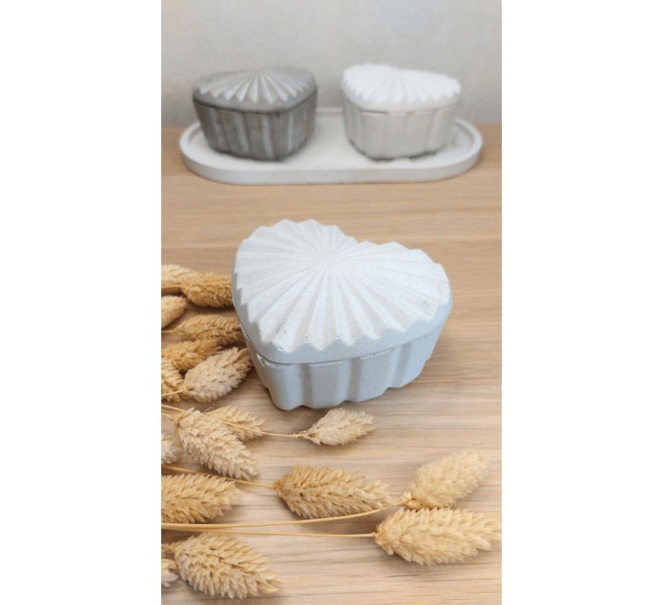 Ręcznie wykonana betonowa szkatułka w kształcie serca to elegancki i funkcjonalny pojemnik na biżuterię, drobiazgi, świeczkę tealight – idealny do łazienki czy sypialni. Zawiera hydrofobową powłokę, która chroni materiał przed wilgocią i ułatwia czyszczenie, a wykorzystane podkładki zabezpieczają powierzchnie przed zarysowaniem.