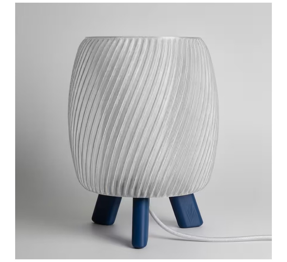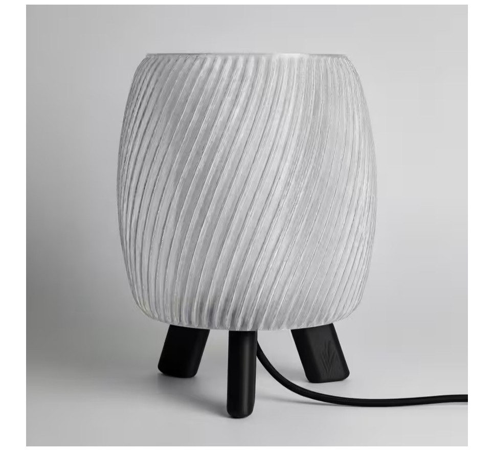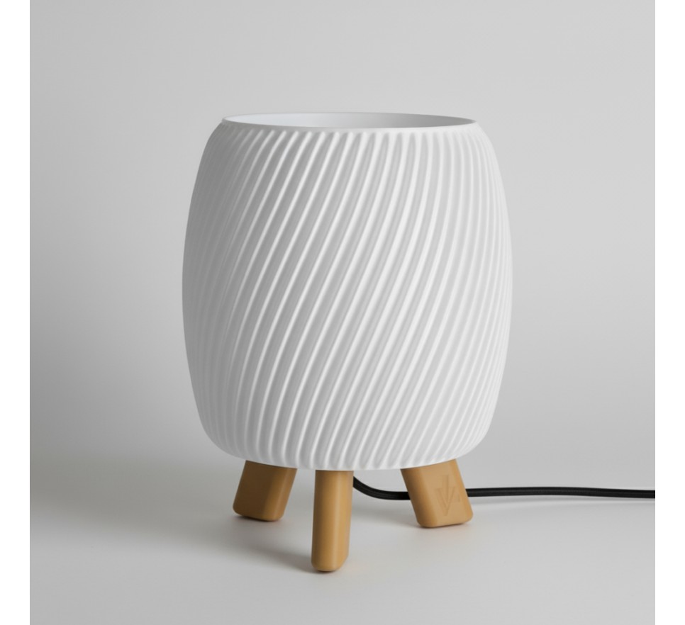 Lampa Balin przyciąga wzrok swoją niecodzienną, owalną formą, która dodaje wnętrzu subtelnej dynamiki. Jej klosz o strukturze spiralnych, falistych linii, osadzony na stabilnej, trójnożnej podstawie, daje przyjemne, rozproszone światło i tworzy elegancki kontrast.