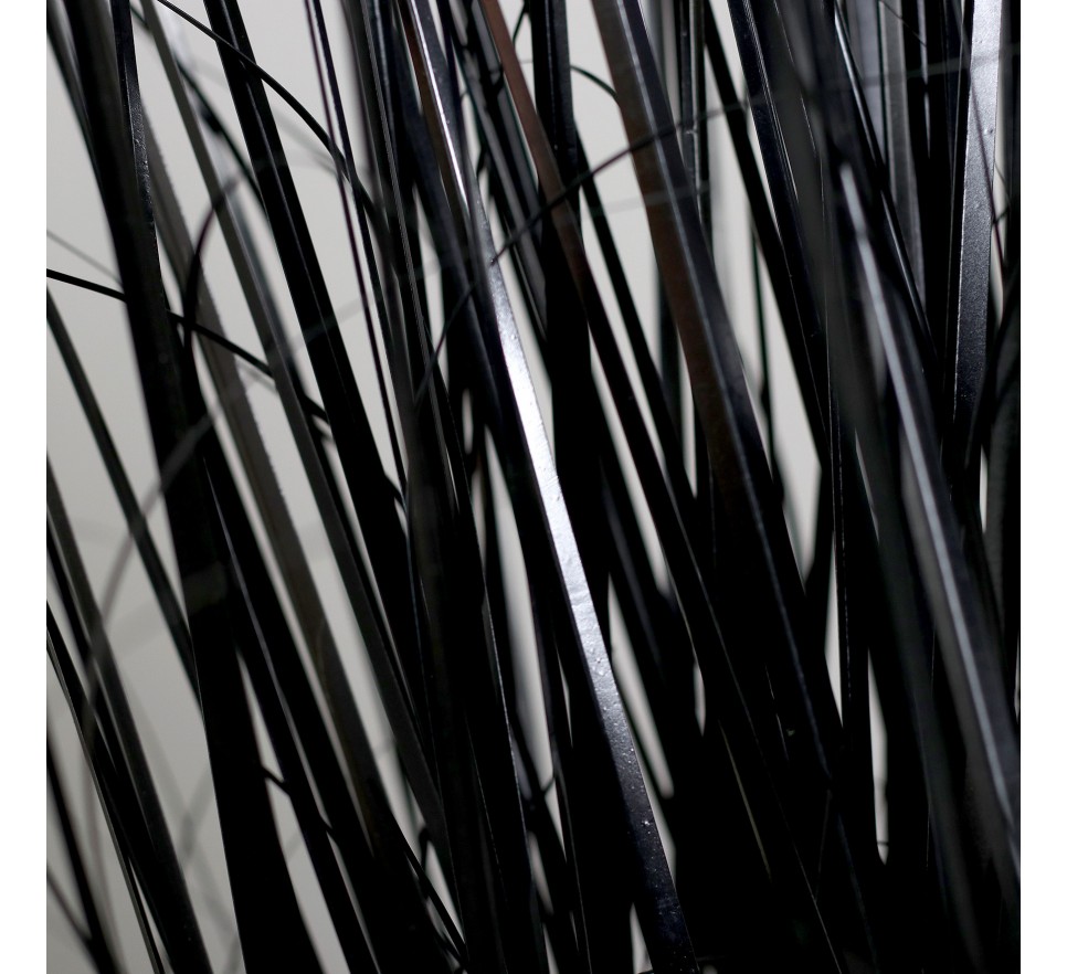 Głęboki, elegancki odcień czerni w połączeniu z minimalistyczną formą trawy stanowi efektowny akcent wizualny, doskonały do luksusowych salonów, przestronnych biur czy hotelowych lobby. Starannie dobrana, szara doniczkaidealnie uzupełnia jej styl i stabilizuje wysoką kompozycję.