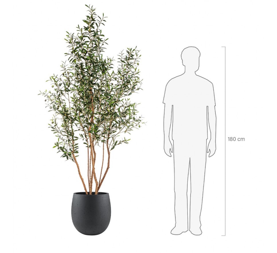 Rozkoszuj się tym imponującym i realistycznym Drzewkiem Oliwnym bez konieczności pielęgnacji! Roślina osadzona jest w stabilnej doniczce technicznej (wymiary: ↑14 cm, ↔17 cm).