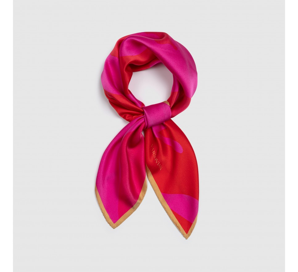 Delikatna jedwabna apaszka produkowana we Włoszech to kwintesencja luksusu i wyrafinowanego rzemiosła. Ręcznie wykańczana z najwyższą starannością, zachwyca wspaniałą czerwono-różową kolorystyką, która symbolizuje pasję, romantyzm i subtelność. Zdobiona motywem putto – anielskich postaci, które od wieków są ikoną sztuki baroku i klasycznej estetyki – wprowadza do stylizacji nutę ponadczasowej elegancji i artystycznego uroku.