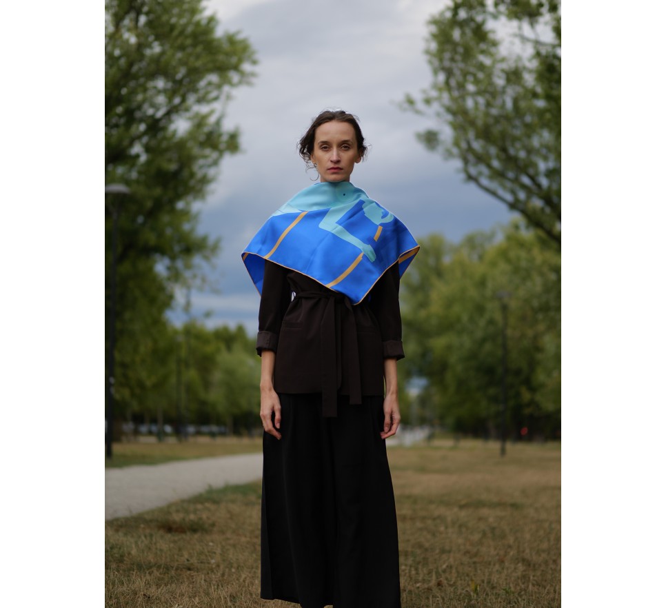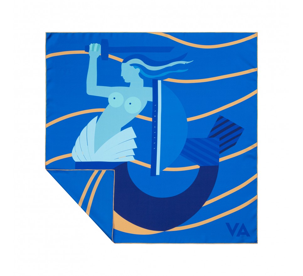 Inspiracją do stworzenia tej apaszki była przedwojenna płaskorzeźba Henryka Grunwalda z lat 30., utrzymana w wyjątkowej stylistyce art déco. Graficzne linie, geometryczne formy i rytmiczna kompozycja oddają ducha epoki, jednocześnie podkreślając symboliczne znaczenie Syrenki jako emblematycznej postaci Warszawy.
