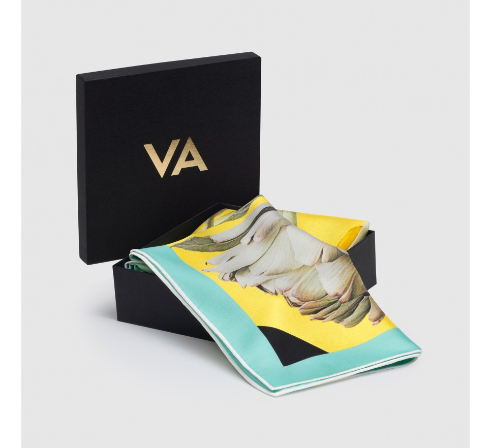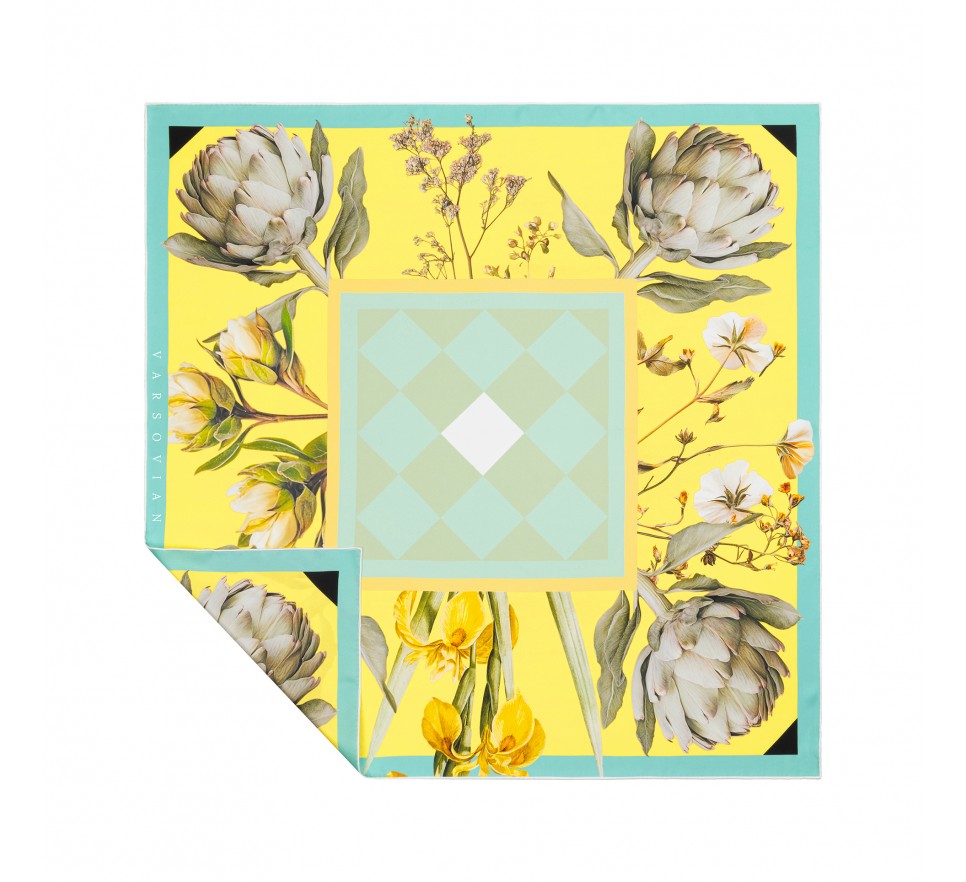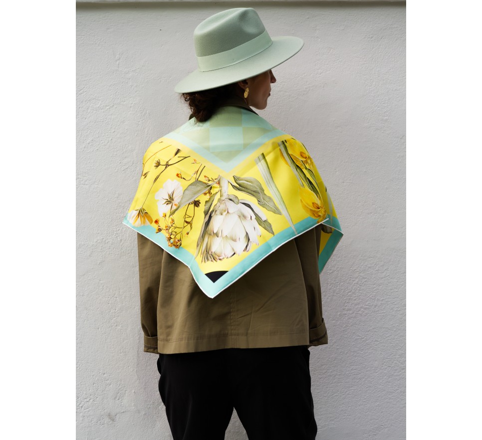 To hołd dla codziennego życia Rzymu – spokojnego, smakowitego i pełnego światła. Głównym bohaterem jest karczoch – warzywo-symbol Wiecznego Miasta. Z zewnątrz surowy, w środku delikatny, od wieków króluje na rzymskich targach i talerzach. Włosi traktują go jak dzieło sztuki – i właśnie w tym duchu powstała ta apaszka.