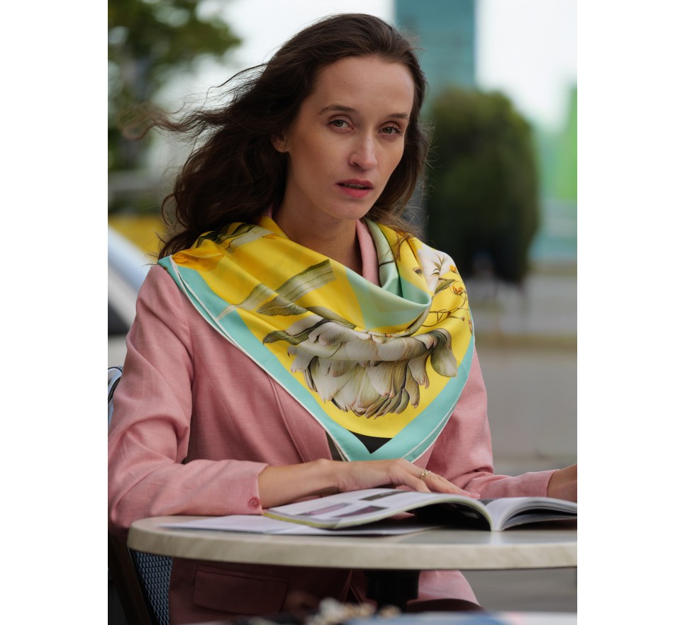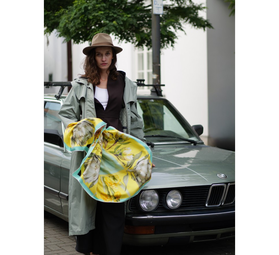 To apaszka dla kobiety, która ceni przedmioty z historią. Która nosząc jedwab, pamięta zapach oliwy, cytryn i gwar Campo de' Fiori. Apaszka, którą można zawiązać nonszalancko na szyi, we włosach lub na torbie – z rzymską pewnością siebie, niemal mimochodem.