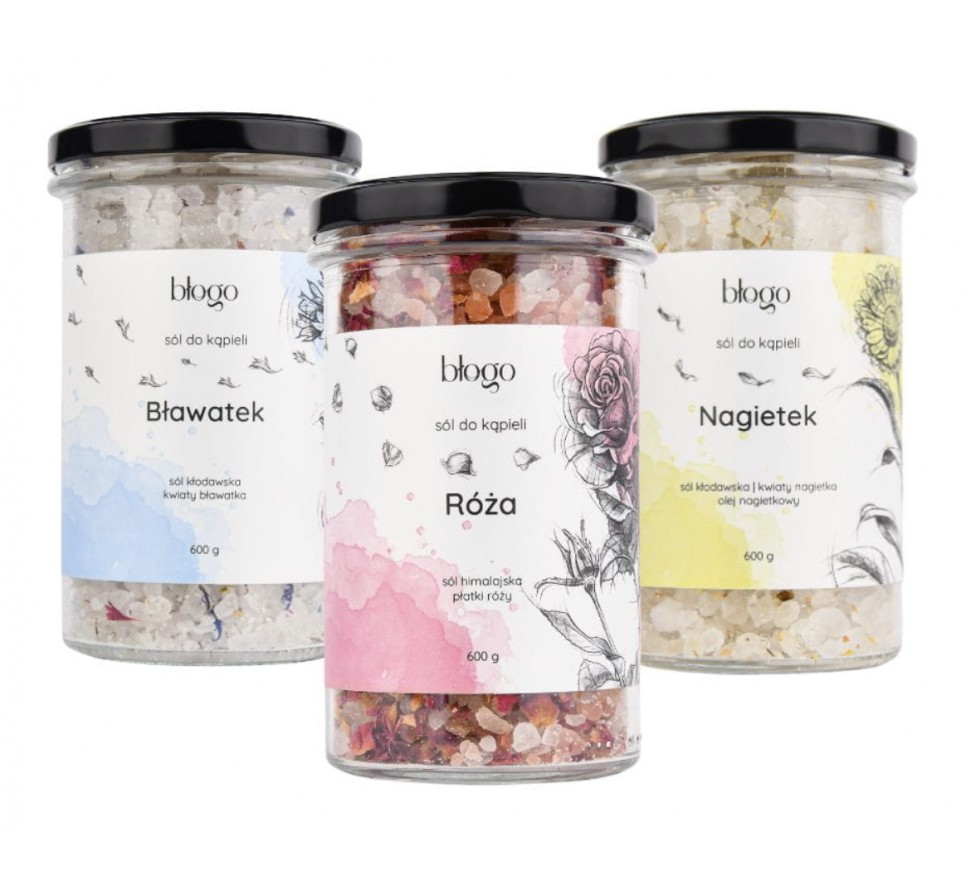 Zestaw soli do kąpieli Bławatek Nagietek Róża