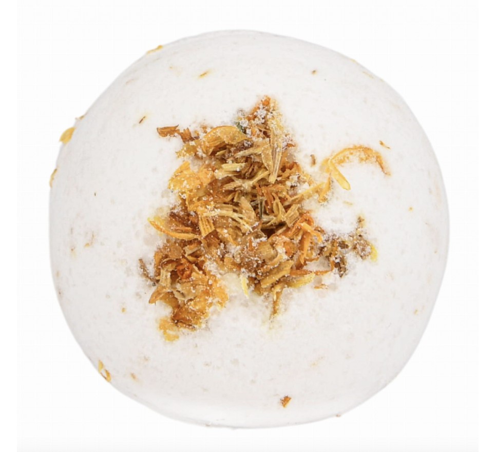 Musująca kula do kąpieli wypełniona płatkami nagietka oraz odżywczymi składnikami przemieni Twoją kąpiel w aromatyczny i kojący rytuał.