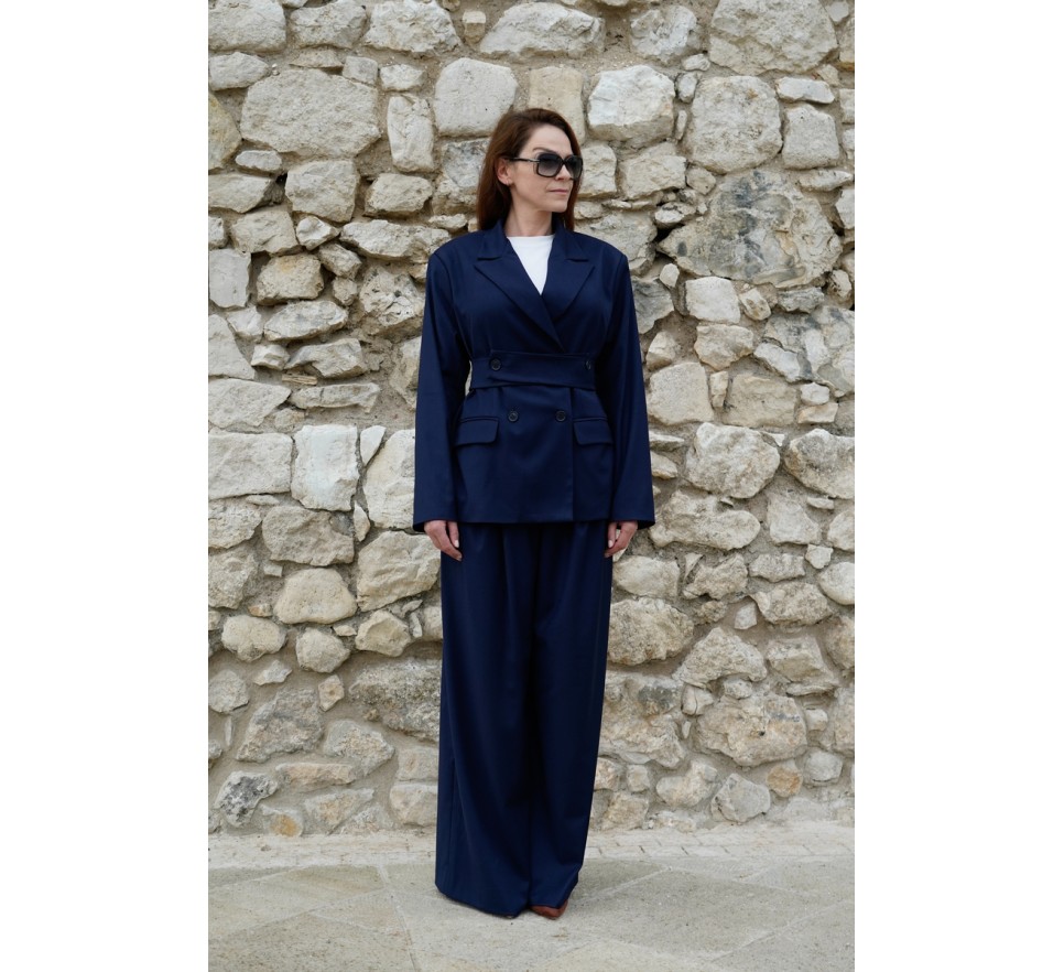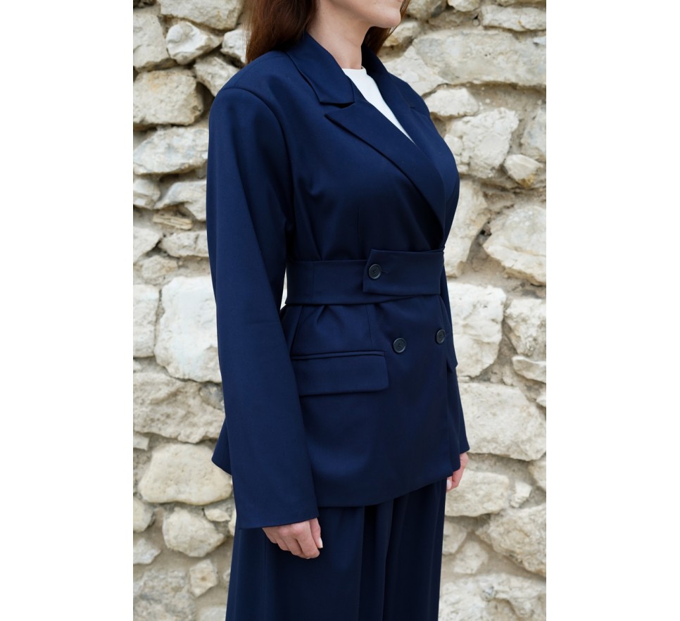 Marynarka Epure klasyczna w nowoczesnym wydaniu. Prosta forma marynarki z szeroką linią ramion. Zapinana dwurzędowo na guziki. Marynarka ma nieco oversizową formę, którą łatwo zmienić zakładając do niej pasek, który jest w komplecie. Szeroki i oryginalny umożliwia taliowanie marynarki i uzyskanie bardzo kobiecej linii. Jest to model marynarki, który idealnie sprawdzi się do wielu stylizacji i na wiele okazji.