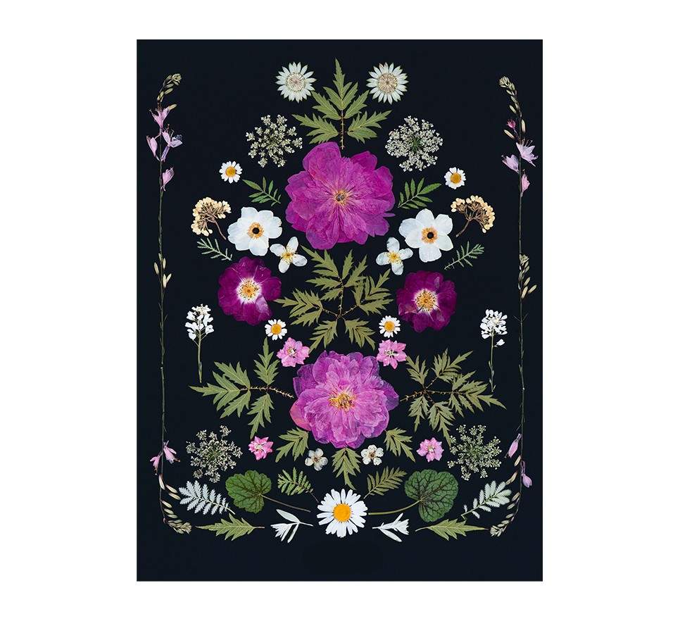 Trzecia praca z serii "Pieśni Kwiatów" z różowym akcentem kwiatów piwonii, róż i ostróżki.