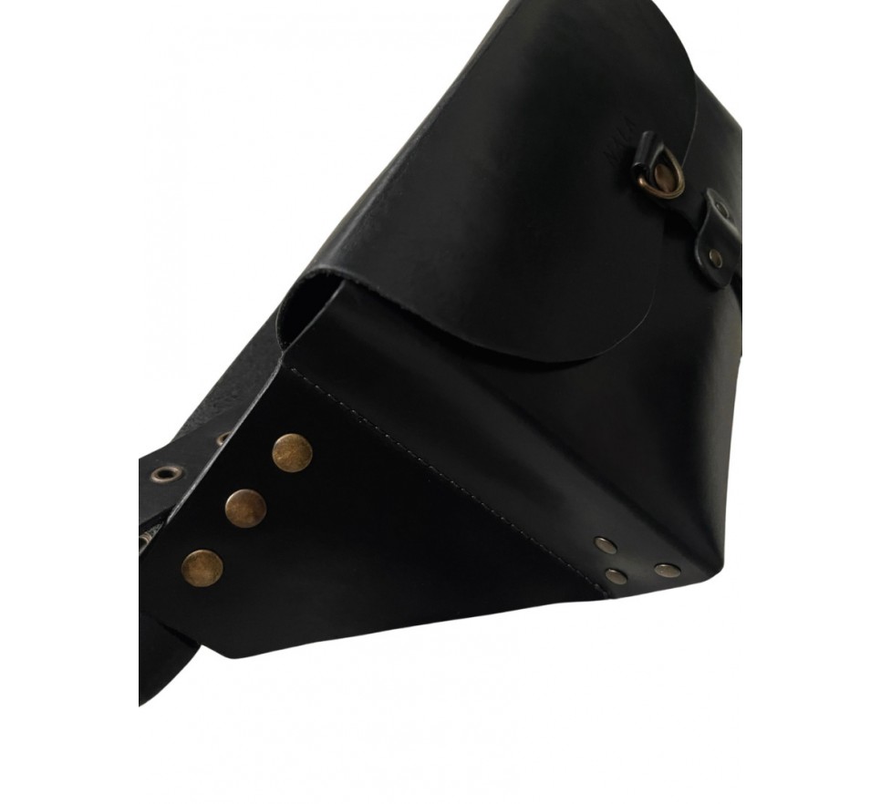 Na uwagę zasługuje oryginalne zapięcie podkreślone złotymi nitami oraz dopinany breloczek z frędzlami (chwost), który dodaje lekkości i ruchu. Ten detal tworzy ciekawy kontrast z geometryczną bryłą nerki i sprawia, że model wyróżnia się na tle klasycznych saszetek. To praktyczny element garderoby, ale też mocny akcent stylu — dla osób, które lubią unikatowe formy i dopracowane wykończenie.