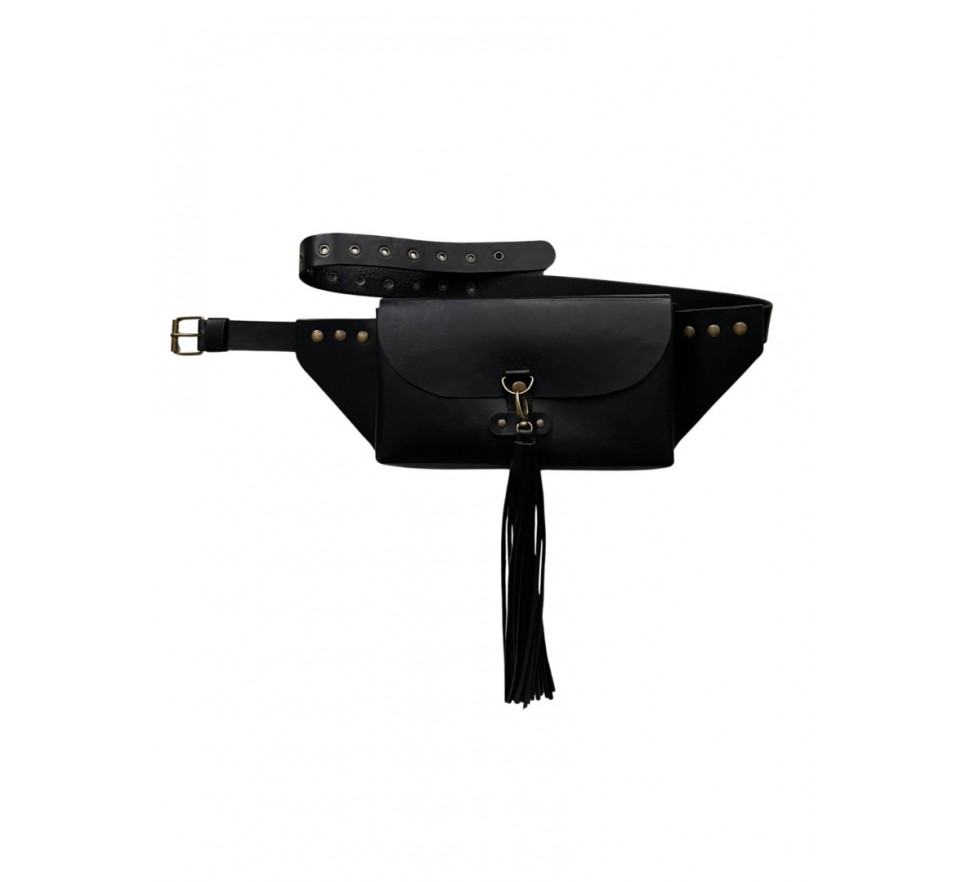 Geometryczna nerka z frędzlami to wyrazisty dodatek uszyty z naturalnej skóry garbowanej roślinnie i wykończony okuciami w kolorze starego złota. Jej prostokątna forma nadaje całości nowoczesny, uporządkowany charakter, a regulowany, zintegrowany pasek pozwala dopasować długość do sylwetki i sposobu noszenia.