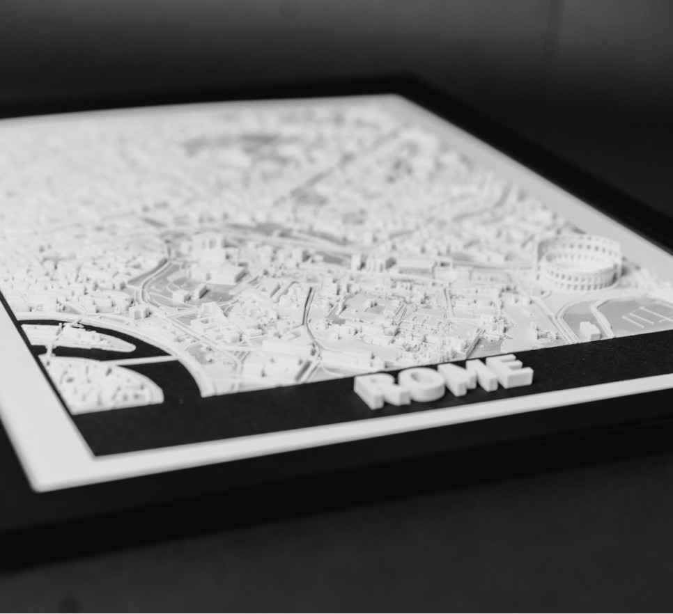 Nasze makiety wykonane z dbałością o najdrobniejsze detale za pomocą druku 3D. Umieszczone są w eleganckich i minimalistycznych czarnych ramach, które dodają im uroku i stylu.