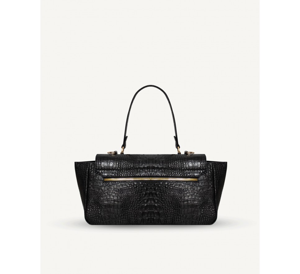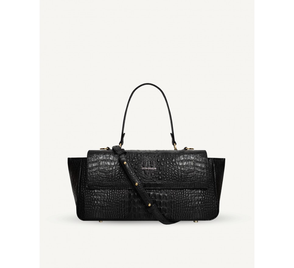 Torebka wykonana z naturalnej skóry tłoczonej na wzór krokodyla, wykończona materiałową wodoodporną podszewką. Zapinana na dwa magnesy i suwak. W środku znajdują się dwie kieszenie, duża kieszeń wielkości torebki, zapinana na suwak pod klapą i otwarta wewnątrz torby przedzielona na pół. Na zewnętrznej stronie torby duża kieszeń zapinana na suwak. Na dnie pięć metalowych nóżek, które chronią torbę przed zniszczeniem. Posiada skórzany pasek z dużą możliwością regulacji długości.