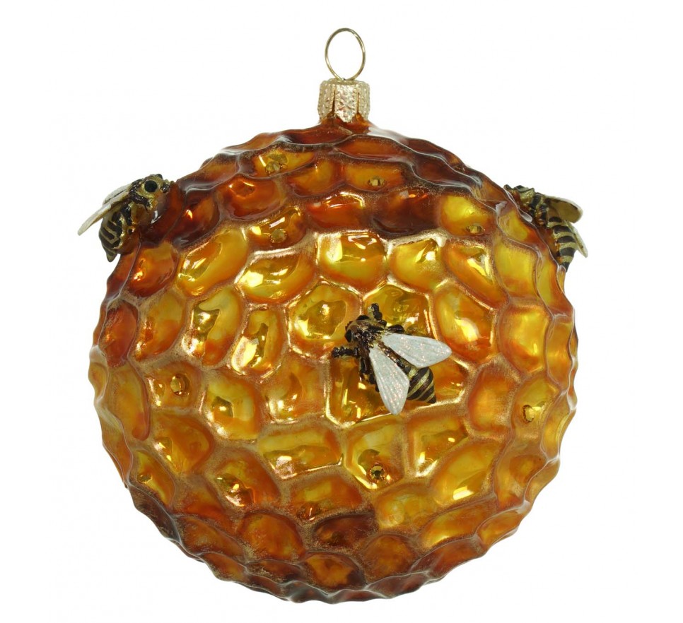 Kula z pszczółkami zachwyca subtelną grą światła i koloru dzięki opalizującej powierzchni oraz dekoracyjnym żłobieniom. To elegancka ozdoba, która pięknie rozświetli każdą choinkę.