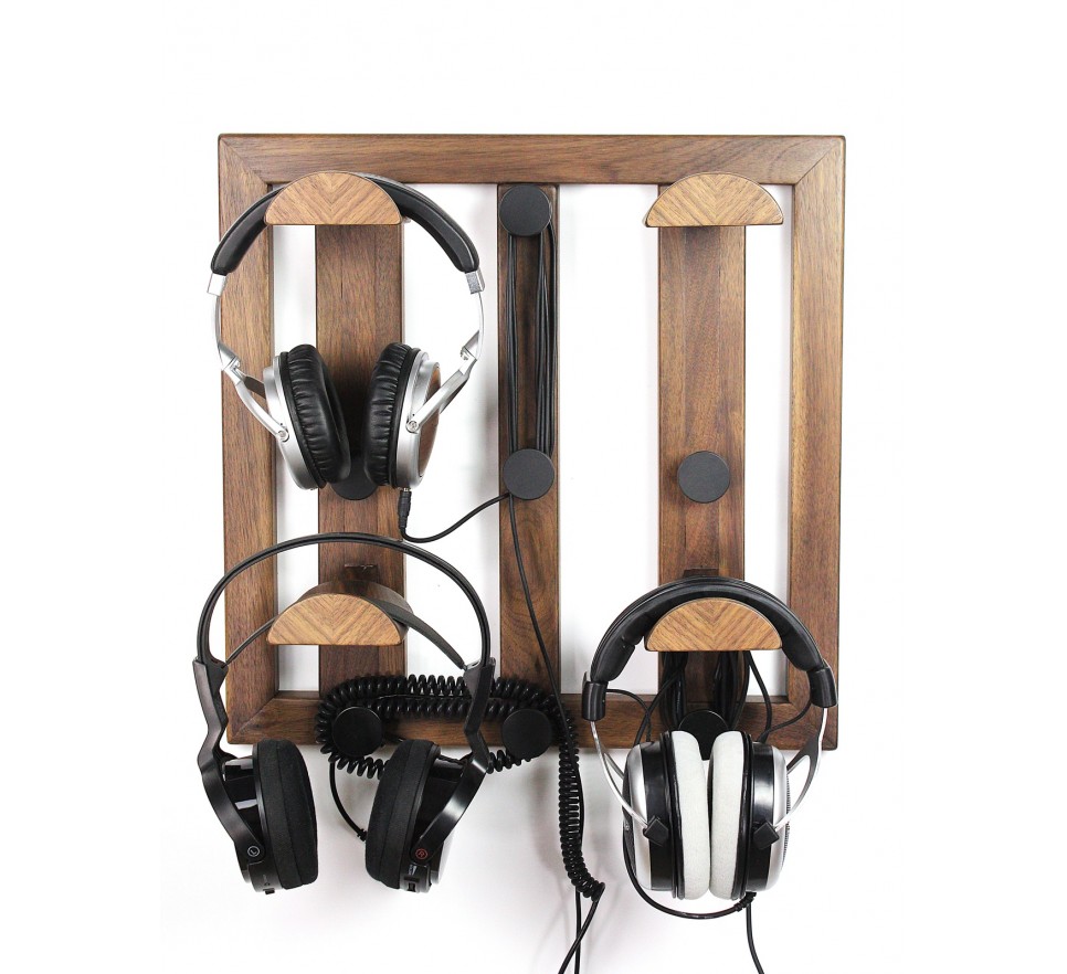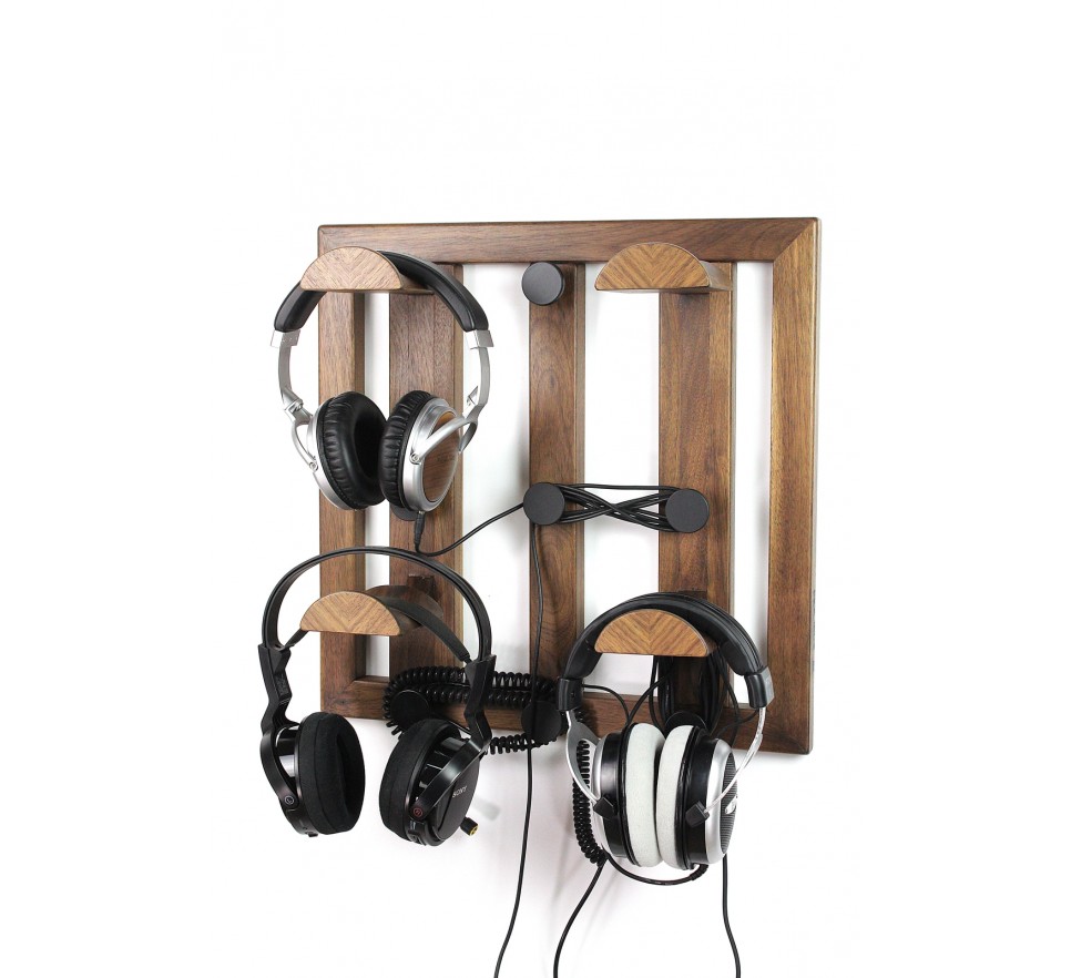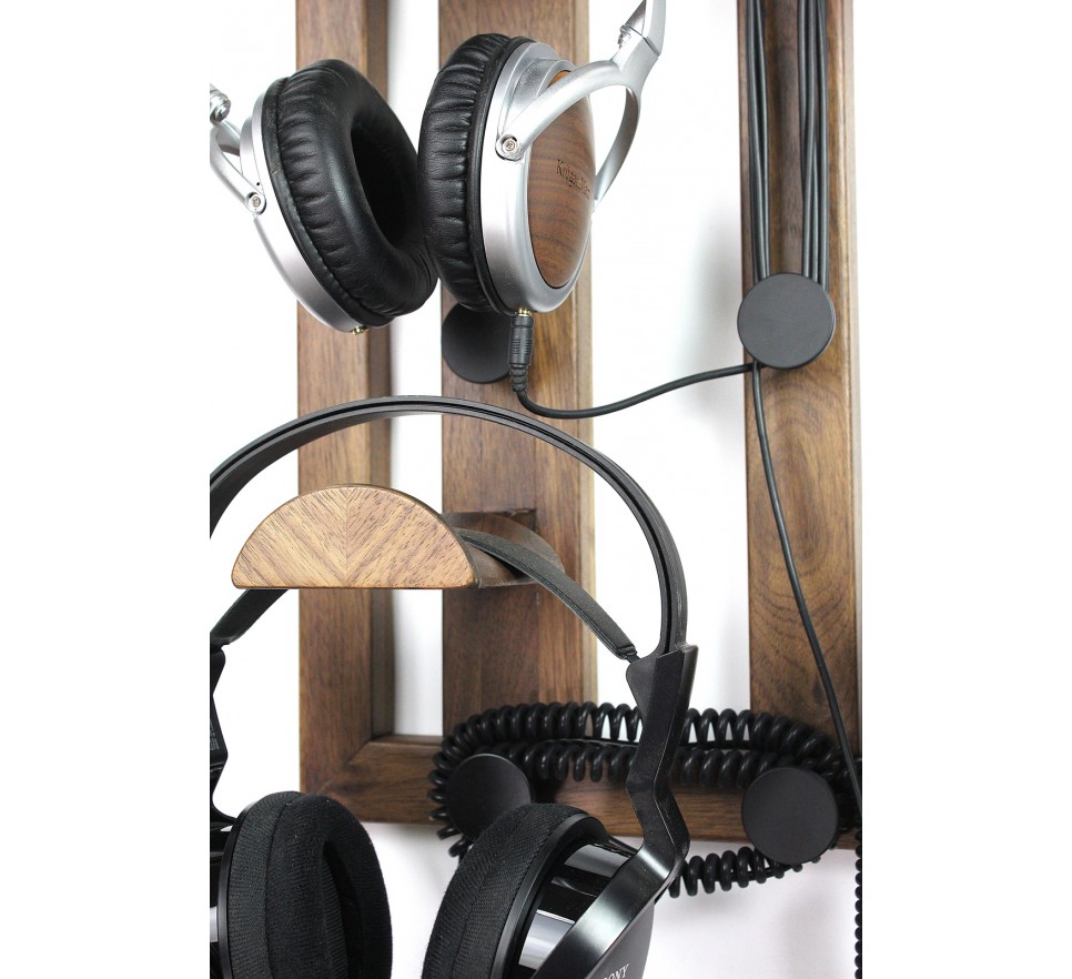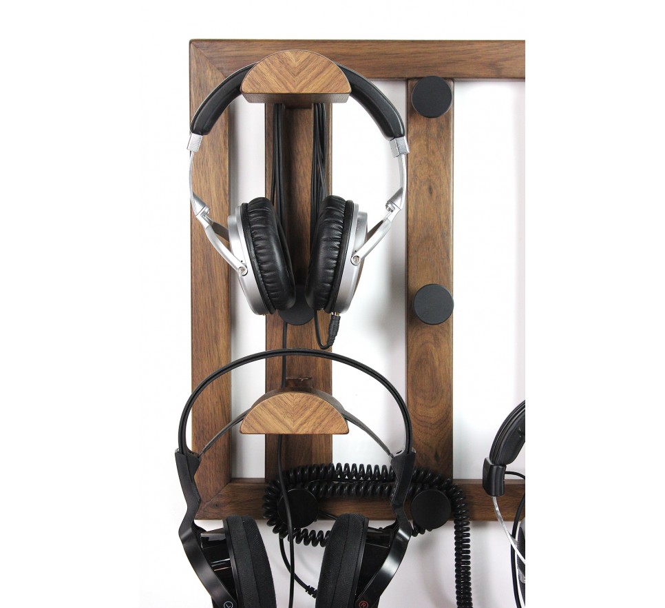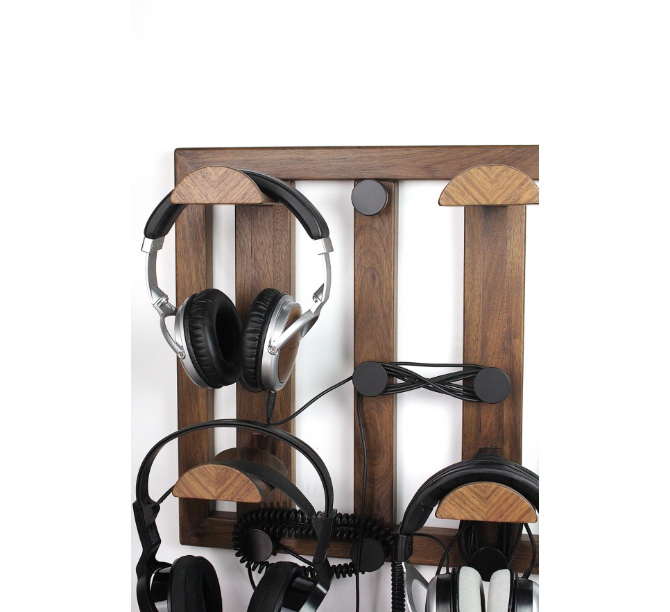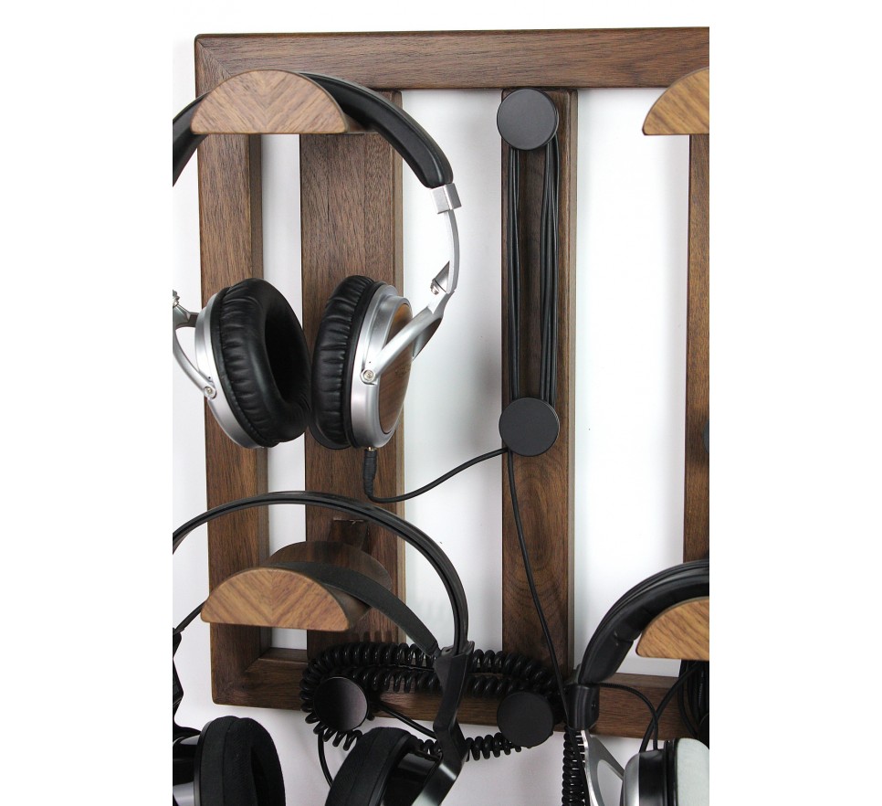 Ekskluzywny wieszak do bezpiecznego przechowywania 4 par słuchawek. To też użyteczny organizer na kable słuchawkowe, umożliwiający ich nawinięcie na kilka sposobów.