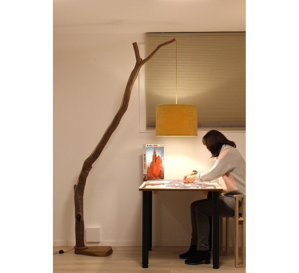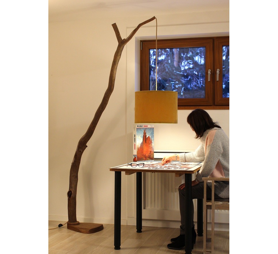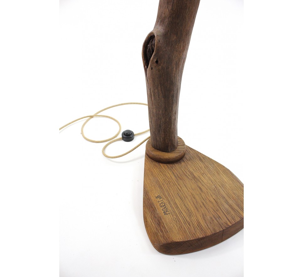 Niepowtarzalna lampa podłogowa wykonana ręcznie ze starej gałęzi dębowej. Drewno wysuszone przez słońce i wiatr. Następnie dokładnie oczyszczone, szczotkowane i zabezpieczone twardym olejowoskiem. Drewno jest dwukrotnie zabezpieczone przed szkodnikami.